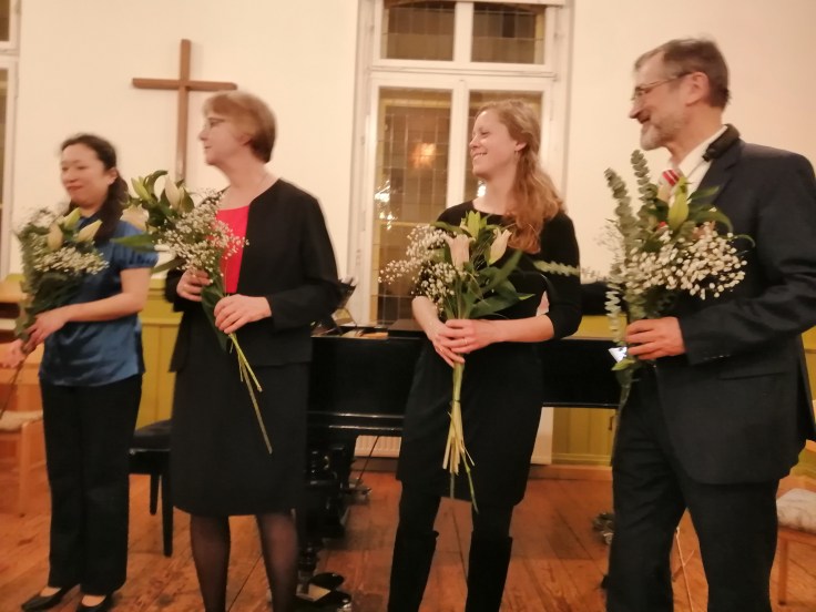 Am Sonntag-Nachmittag hat Herr Dietze sein Kammermusik-Konzert im Gemeindesaal der Christus-Kirche gegeben. Er spielt immer mit kleinen Ensembles in wechselnden Besetzungen.