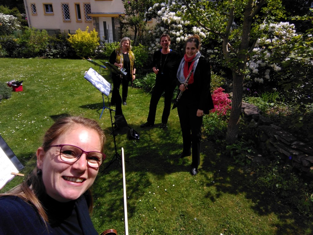 Beim letzten Auftritt unseres ersten LLD Einsatzes spielten wir in einem Hinterhof für ein junges Paar. Sie ist als Studentin seit Wochen zu Hause und ihr Ehemann wollte sich mit diesem Ständchen für ihr tapferes Durchhalten in dieser Zeit bedanken. Wir spielten u.a. auch den Abendsegen von Engelbert Humperdinck, ein ohnehin wunderschönes Stück, das in dieser intimen Situation besonders anrührend war. Als ich anschließend den dazu gehörigen Text vorlas und noch ein paar Worte dazu verlor, hatten wir alle Tränen in den Augen und einen Kloß im Hals, sicherlich aus unterschiedlichen Gründen und dennoch für alle spürbar. Ein sehr berührender Moment, den wir bestimmt alle so bald nicht vergessen werden.