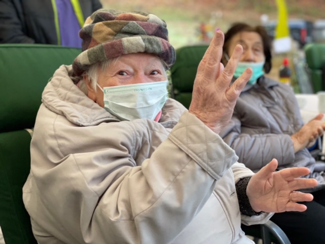 Unser dritter und leider schon wieder letzter Halt bei dieser Weihnachtsliederlieferdienstaktion war auf dem Parkplatz von „Haus Barbara“ der Diakonie Naumburg-Zeitz in Teuchern. Wieder sahen wir von fern viele Senioren und PflegerInnen, die schon bei unserer Ankunft freudig winkend und rufend heranströmten. Auch hier hatte sich eine Mitarbeiterin um das Konzert beworben, um etwas Weihnachtsfreude in die einsame Zeit zu bringen. Viele Senioren haben in dieser Zeit aus Vorsicht kaum Besuch von Angehörigen. Dankbar wird da jede Abwechslung begrüßt. Freude und ein paar Tränchen in den Augen waren schönster Dank, Musik dringt gefahrlos dahin, wo kein Virus je hinkommt.