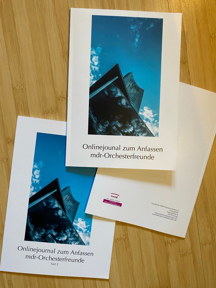 Teil 1 dieses Journals druckten wir im September 2020, darin waren alle Blogartikel von Beginn an bis Ende Spielzeit 2019/20, einigen Mitgliedern konnten wir das Journal damals bei einem kleinen Hauskonzert persönlich überreichen. In Teil 2 schließen sich nun alle weiteren Artikel an, die bis heute auf unserem Blog veröffentlicht wurden. Gerade die Interviews und kleinen Portraits über unsere neuen #mdrSO-Kolleg:innen wie auch die „Verabschiedungsartikel“ der Musiker:innen, die sich in den Ruhestand begeben, werden sehr gern gelesen, sowohl online als auch offline. Vielen Dank an dieser Stelle allen eifrigen Leser:innen, hier und da. Wenn es gefällt, freuen wir uns natürlich immer über ein Like-Sternchen oder sogar einen Kommentar. Der Blog ist das Herzstück unserer digitalen Arbeit und die Journale dazu sind auch eine schöne Art der Archivierung.
