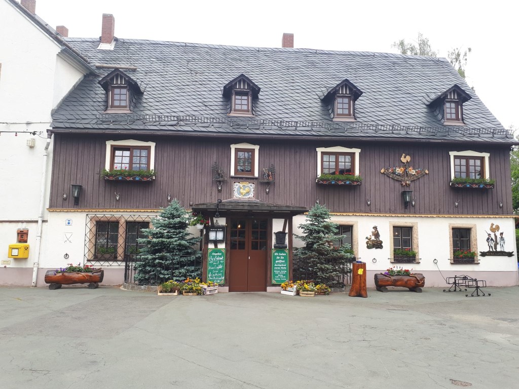 Weiter ging es zum Mittagessen in eine kleine Gaststätte. Das Essen dort war schmackhaft und in der Gaststätte sah man an der Dekoration, dass das Erzgebirge nah ist. Es sind Nussknacker und Räuchermännchen ausgestellt und im Flur steht ein ausgestopfter Fuchs in einer angedeuteten Landschaft. Beim Essen sprachen wir noch einmal über den Museumsbesuch. Da es Montag war und das Museum nur für Besuchergruppen geöffnet hatte, konnten wir auch nicht länger bleiben und die Ausstellung noch alleine anschauen. Das haben wir bedauert. Doch wir erfreuten uns inzwischen an der erzgebirgischen Atmosphäre der Gaststätte.