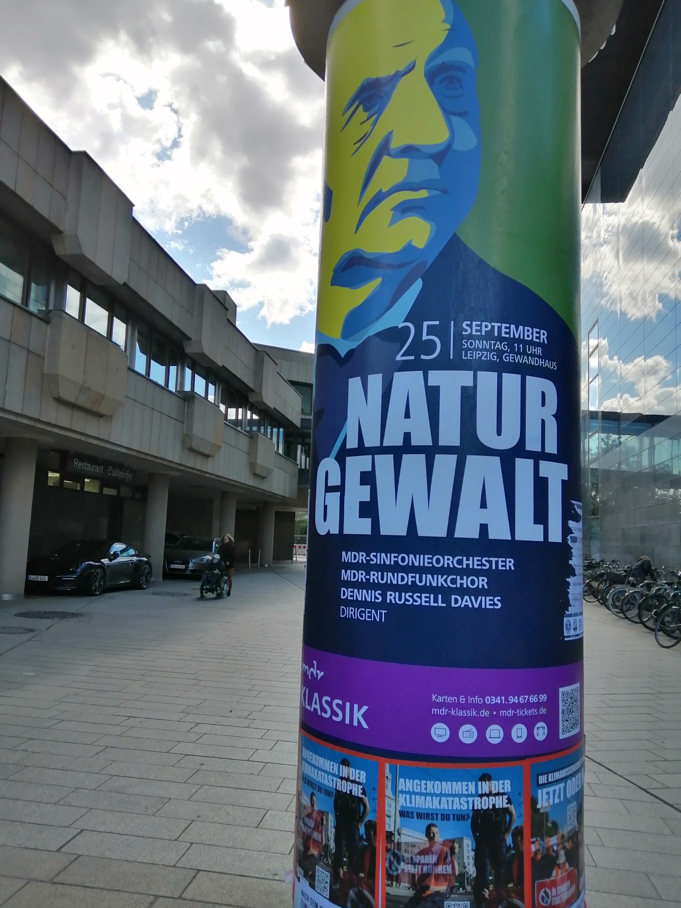 Auf dem Leipziger Augustusplatz steht eine kleine Litfaßsäule. Diese zeigt immer das Programm des kommenden Konzerts an. Als ich las „Naturgewalt“ war ich sehr gespannt auf dieses Matinéekonzert. Auch wenn es inzwischen mehr als eine Woche her ist, möchte ich gern noch meine Eindrücke wiedergeben.
