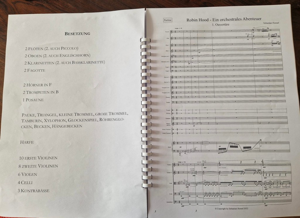 Einen riesen-Spaß macht das, was unser Bratschen-Kollege Sebastian Hensel aus Robin Hood geschaffen hat: Also er schont uns nicht – die Anforderungen an uns Musiker sind schon ambitioniert…aber das musikalische Ergebnis ist einfach zauberhaft! Wie dort ein Zitat über das andere purzelt, gut gelaunte Anklänge schmunzeln lassen, das ist schon grandios.