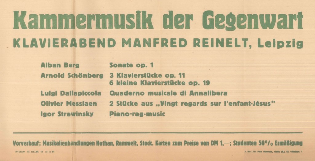 „Auf ihn passte keine Lebensregel: Der Pianist Manfred Reinelt“, so überschreibt Dr. Thomas Schinköth seinen Vortrag, den er für eine Veranstaltung unseres Freundeskreises am 2. Februar 2023, 16 Uhr im Orchesterprobensaal des MDR-Würfels am Augustusplatz zusammengestellt hat. (Eintritt frei. Teilnahme von Vereinsgästen nur mit Voranmeldung – Nachricht an uns genügt)