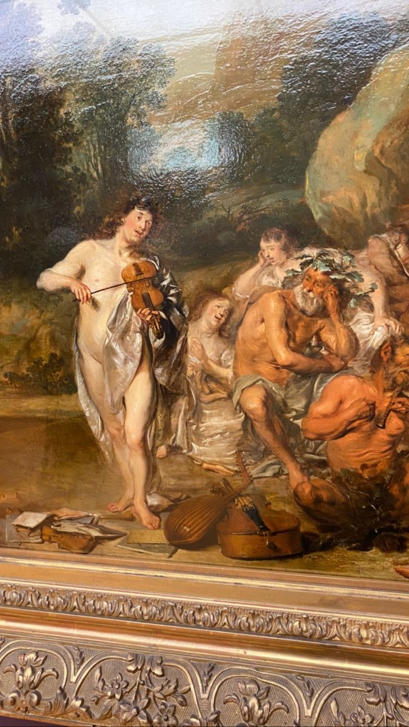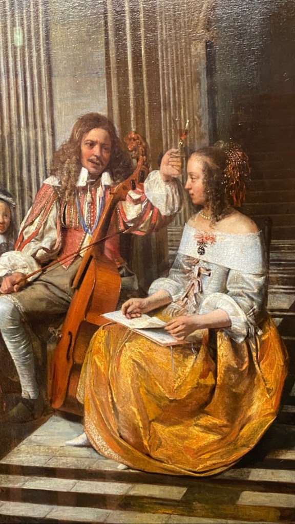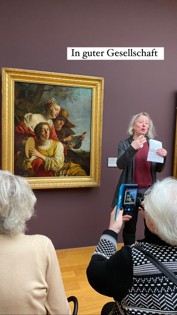 Unser Grüppchen hatte eine wunderbare Führung, wir entdeckten viel, versanken in barocken Gemälden, vertieften uns in kleine und große Gruppen, betrachteten viele Musikerhände (die bekanntlich sehr schwer zu malen sind und hörten erstaunt, dass Gemälde damals teurer waren, wenn viele Hände darauf waren – eben weil es so schwer ist, sie zu malen, noch dazu in spezieller Spielhaltung je Instrument) und Instrumente (schnell befanden wir uns an einer Stelle in einer Diskussion, ob es nun ein Kontrabass oder doch ein Cello ist… bei Flöten gibt es zum Glück kaum Zweifel 😉