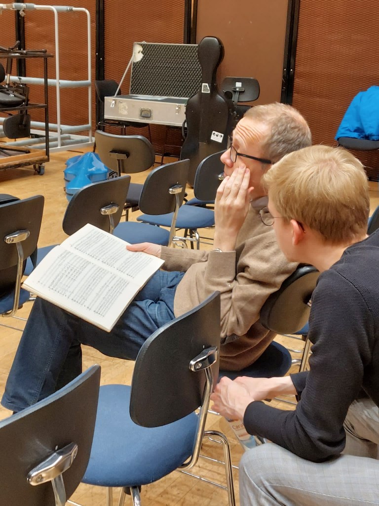 die Kurzfristigkeit dieser Einladung obliegt nicht uns Musikern. Wir arbeiten seit gestern mit Dirigierstudenten.. dabei geht es um Hilfestellung von unserer Seite als Musiker, sowie Hinweise der Dirigierprofessoren, um bei der Erarbeitung von Repertoire eines Sinfonieorchesters Erfahrungen zu sammeln. Das Ergebnis dieses Projektes können Sie am Freitag erleben. Ein bunter Strauß von Highlight der Klassik, welche in unseren Konzerten selten erklingen. Je nach Stand der Ausbildung ist das Niveau der Studierenden unterschiedlich. Ein Orchester „live“ zu dirigieren ist für deren Entwicklung wichtig. Wir sind gespannt, wie die Kandidaten die Hinweise unter Bedingungen des Konzertes umsetzen werden. Wir werden unser Bestes geben.