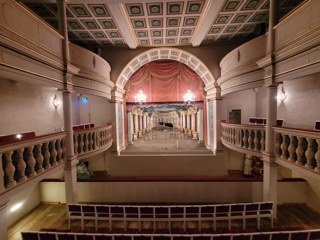 Portal von Schloss FriedensteinIm NordflügelEkhof-Theater im WestturmBlick „hinter die Kulissen“HauptsaalBühne am Nachmittag (noch ohne Orchester)