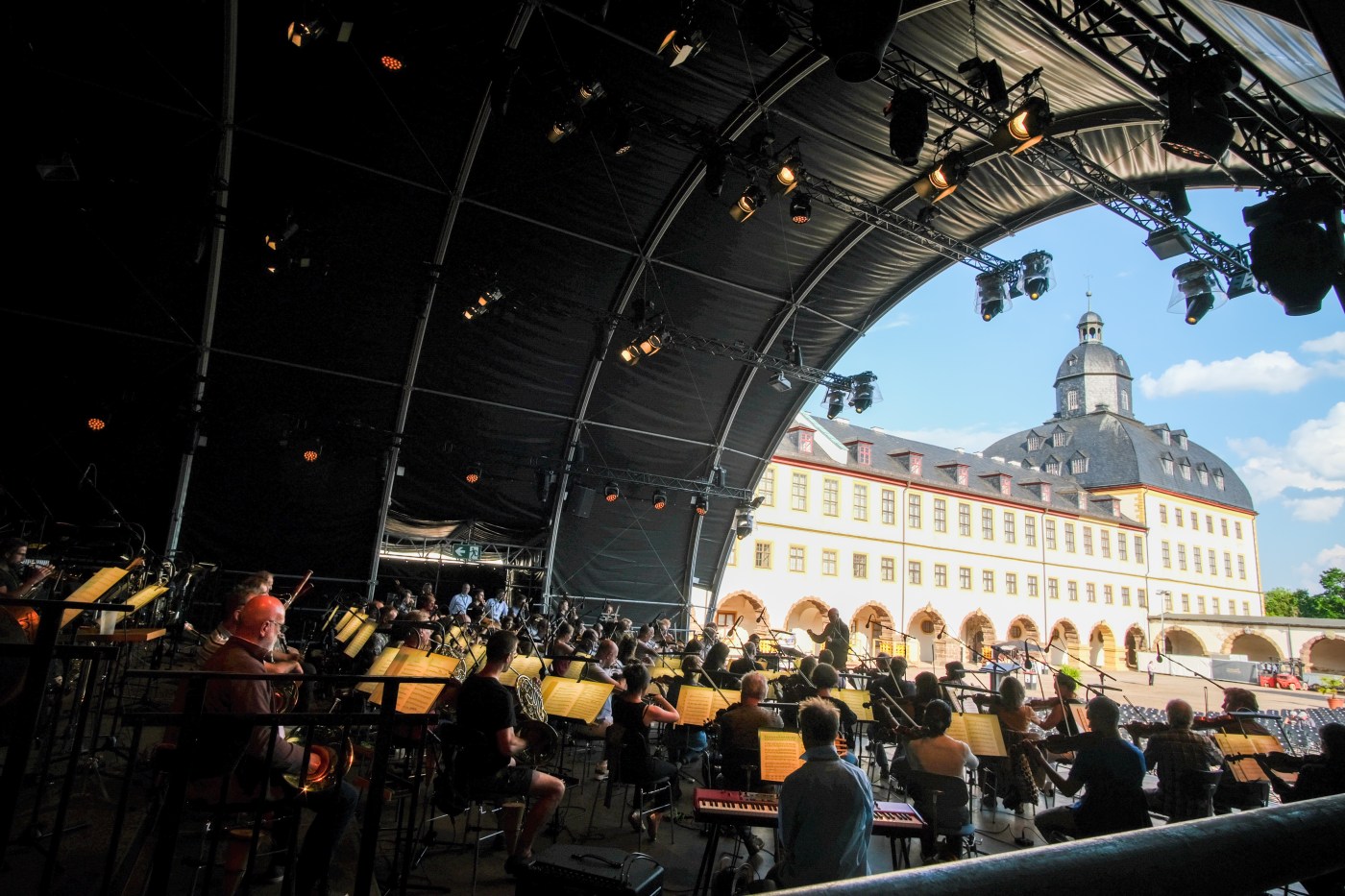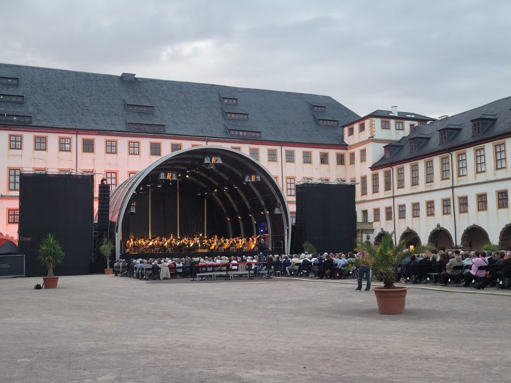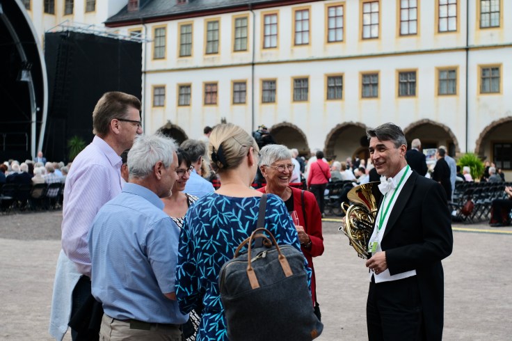 Das MDR-Sinfonieorchester eröffnete am Samstag mit seinem Chefdirigenten Dennis Russell Davies in Gotha auf Schloss Friedenstein den 32. MDR-Musiksommer. Das Wetter hatte mitgespielt: es war nicht zu heiß und nicht zu kühl. So konnte ich die Gelegenheit nutzen, mich vor dem Konzert unter das Publikum zu mischen. Wie ich in Erfahrung bringen konnte, waren die Gäste nicht das erste Mal im Konzert unseres Orchesters. Warum auch nicht? Sind doch unsere Konzertprogramme immer sehr abwechslungsreich. Es gibt neben altbekannten Werken eben auch immer Neues zu entdecken. Im gestrigen Fall die 9. Sinfonie „Aus der neuen Welt“ von Antonin Dvorak und Charles Ives Variations on „America“ bzw. Alberto Ginastera Danzas del Ballet »Estancia«. Und am 23. bzw. 24. 6. sind wir in Wernigerode und Freyburg, am 1. und 2.7. in Görlitz und Bad Elster. Diese Konzerte geben uns wieder die Möglichkeit, uns im MDR-Sendegebiet unserem Publikum zu präsentieren. Schauen Sie doch mal vorbei!