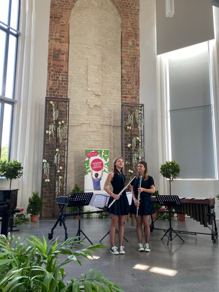 Es war eine Freude, bei diesem Wettbewerb wieder einmal in der Jury zu sitzen. Bei kaum einem anderen Wettbewerb kann man so verschiedenste Ensemblezusammenstellungen erleben, wie bei diesem. Gerade dadurch fällt natürlich eine Entscheidung für ein Ensemble besonders schwer. Ich persönlich freue mich, dass sich im Landeswettbewerb Brandenburgs in der Altersgruppe 1 das Ensemble „Vibraflutes“ mit Charlotte und Elisabeth Kugler (beide Querflöte und Vibraphon bzw. Marimba) von der Kreismusik- und Kunstschule „Gebrüder Graun“ des Landkreises Elbe-Elster durchsetzen konnte und einen ersten Preis in dieser Altersgruppe gewann. Diese Zusammenstellung gibt es wirklich selten bereits in der Altersgruppe 1. Den Beiden sah man die Freude beim Musizieren an, sie harmonierten in drei verschieden besetzten Stücken sowohl als Flötistinnen als auch als Schlagzeugerinnen. Dieses Duo hat so viele Möglichkeiten, in einem gemeinsamen Workshop sollte man das unbedingt weiter ausloten und wer weiß, vielleicht kann man einen der Gebrüder Graun musikalisch mit Flöte und Marimba oder Vibraphon neu erwecken? Bravo! – Auch die Preisträger der Altersgruppe 2 beeindruckten mich in Vielfalt der Stückauswahl für ihr ungewöhnlich besetztes Ensemble. Ich wünsche viel Erfolg im November bei der Finalrunde!