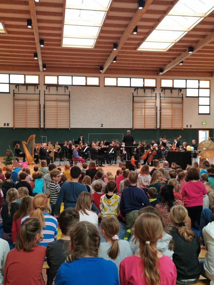 Große Begeisterung und ein herzliches Willkommen gab es am 7.12. in der Obereichsfeldhalle Leinefelde. Nach weiter Reise wurden wir MusikerInnen bereits erwartet – großer Dank an dieser Stelle für die wundervolle Versorgung mit Kaffee und Brötchen. Frisch gestärkt ging es frohgemut ans Werk, die Kinder lauschten fasziniert, für viele war es ein allererster Besuch eines Konzerts mit großem Orchester. #DieMusikMussZuDenLeuten