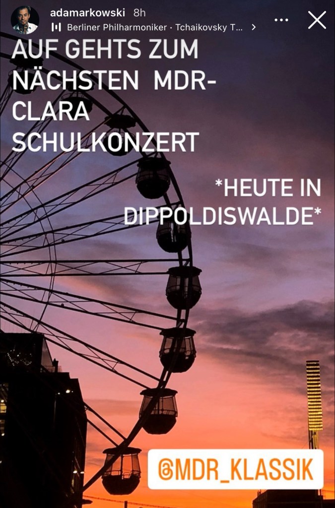 Für das Orchester bedeutete dieses #MusikERleben auf der #mdrCLARAtour wieder einmal einen Spagat zwischen „Inmitten der Nacht“ und herrliche Notenreise mit der Zuckerfee am himmlischen, aber hässlichen Instrument (O-Ton Sprecher) … zeitiges Aufbrechen in Leipzig ist ungewohnt, kann aber vom Himmel auch mit den schönsten Farben belohnt werden, Schwärmen erlaubt. 😉