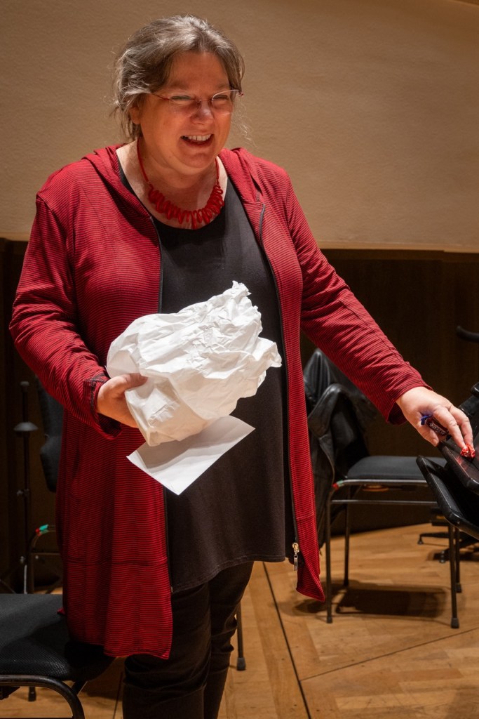 Die Orchesterinspektorin verteilt Süßigkeiten – auch das gehört erfreulicherweise manchmal dazu.