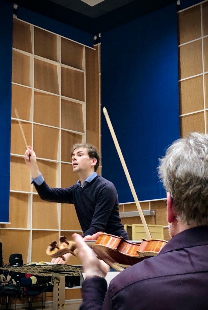 Sechs junge Dirigenten durften 2 Tage lang mit unserem Orchester verschiedenste Werke proben, von Mozart über Strauss bis hin zu Ligeti. Es waren zwei sehr interessante Tage, in denen wir uns nicht nur auf die unterschiedlichsten Stücke, sondern auch auf die verschiedene Probenarbeit der jungen Studenten einstellen mussten. Jeder Kandidat brachte seine eigene Stückvorstellung mit und seine eigene Herangehensweise, uns diese zu vermitteln. Neben der Interpretation war u.a. auch die Dirigiertechnik und die Kommunikation ins Orchester Wettbewerbskriterien für die Jury, bestehend aus Kollegen des Orchesters und Professoren der Hochschulen.