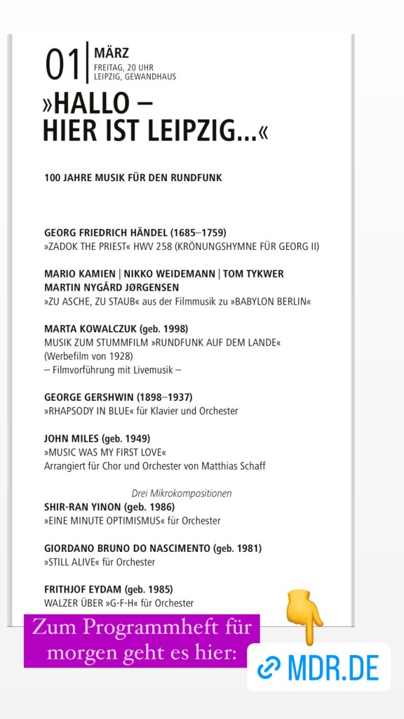 Das Konzert war am Abend 19:30 Uhr auf #mdrKultur zu hören und steht nun bei #mdrKlassik bereit zum Nachhören.