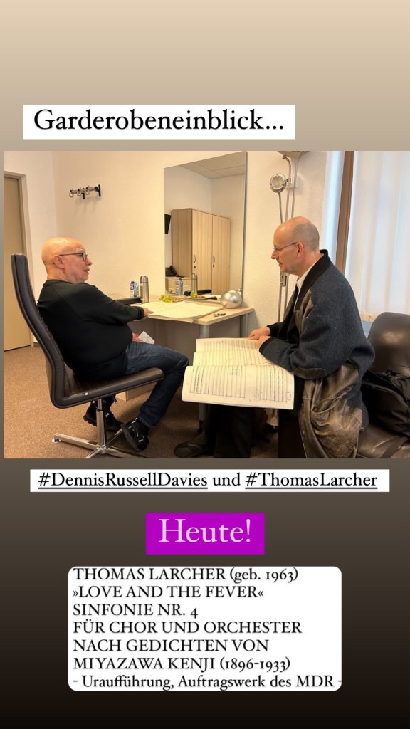 Noch mehr Zukunft gab es jedoch im zweiten Teil des Konzerts. Uraufführungen gab es in den letzten 100 Jahren viele bei den Ensembles des Mitteldeutschen Rundfunks und Chorsinfonik wird dank der vorhandenen Kräfte immer wieder gepflegt. Nun kommt die Sinfonie Nr. 4 für Chor und Orchester nach Gedichten von Miyazawa Kenji „Love and the Fever“von Thomas Larcher dazu. Heute feierte dieses Auftragswerk des MDR ihre Uraufführung in Leipzig.