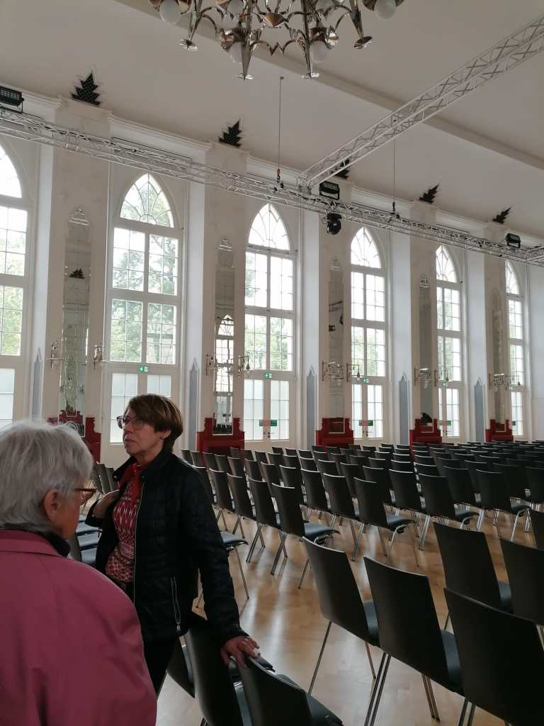 Da gerade die Probe für eine Veranstaltung im großen Saal stattfand, konnten wir nur kurz einen Blick hineinwerfen, erhielten dann aber noch eine interessante Führung durch das ganze Haus, dem jetzigen „Congress Center Leipzig“ mit den vielen sehr schön restaurierten kleineren Sälen. Hier in diesem Haus gab es wieder ganz interessante Informationen von Herrn Prof. Wünsch, aber auch untereinander tauschten wir viele Erinnerungen an hervorragende Konzerte und Geschehnisse aus, die wir selbst einst dort erlebten.