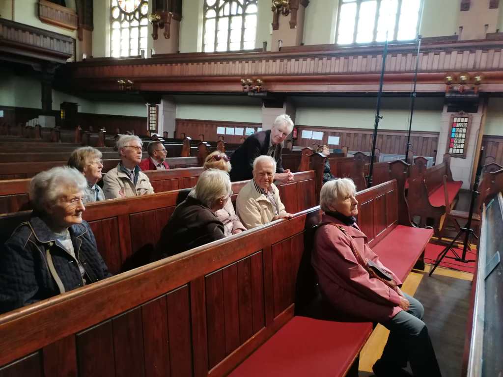 Die Umstände für die Musiker waren nicht einfach und es galt viel zu improvisieren. Wie aufwendig und schwierig dabei der Umbau im Kirchsaal jedes Mal war, wurde uns bei einer sehr guten Führung dort erklärt und gezeigt. Zum Abschluss dann noch das Angebot zur Turmbesteigung, wozu etwas Mut gehörte, aber wir meisterten es und wurden – zumal wir ausgezeichnetes Wetter hatten – mit einer herrlichen Aussicht belohnt.