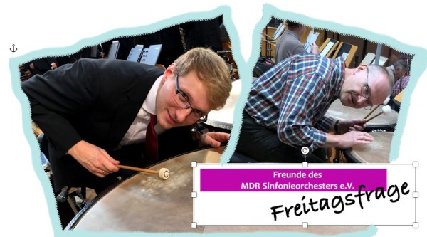 Heute dreht sich die Freitagsfrage um die Pauke und merkwürdige Tätigkeiten im Konzert, Lauschaktivitäten? Christine Friede stellt eine Frage an die beiden Solopauker des MDR-Sinfonieorchesters: "Wieso tippt der Pauker während des Konzerts – wenn er keinen Einsatz hat – vorsichtig auf seinen Pauken herum und lauscht? Für einen Konzertbesucher sieht das sehr lustig aus." Stefan... Continue Reading →