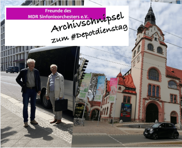 Rosemarie Wunnenburger und Heike Wetzel waren am vergangenen Mittwoch dabei, als sich unser Verein in Leipzig mit einem gemieteten Bus auf Spurensuche nach ehemaligen Spielstรคtten des MDR-Sinfonieorchesters begab (ich selbst, Susanne Schneider, konnte den Ausflug leider nicht begleiten, da dienstliche Verpflichtungen anlagen). Kurz vor Abfahrt in der Goethestraรe - Prof. Thomas Wรผnsch, ehemaliger Solobratscher des... Continue Reading →
